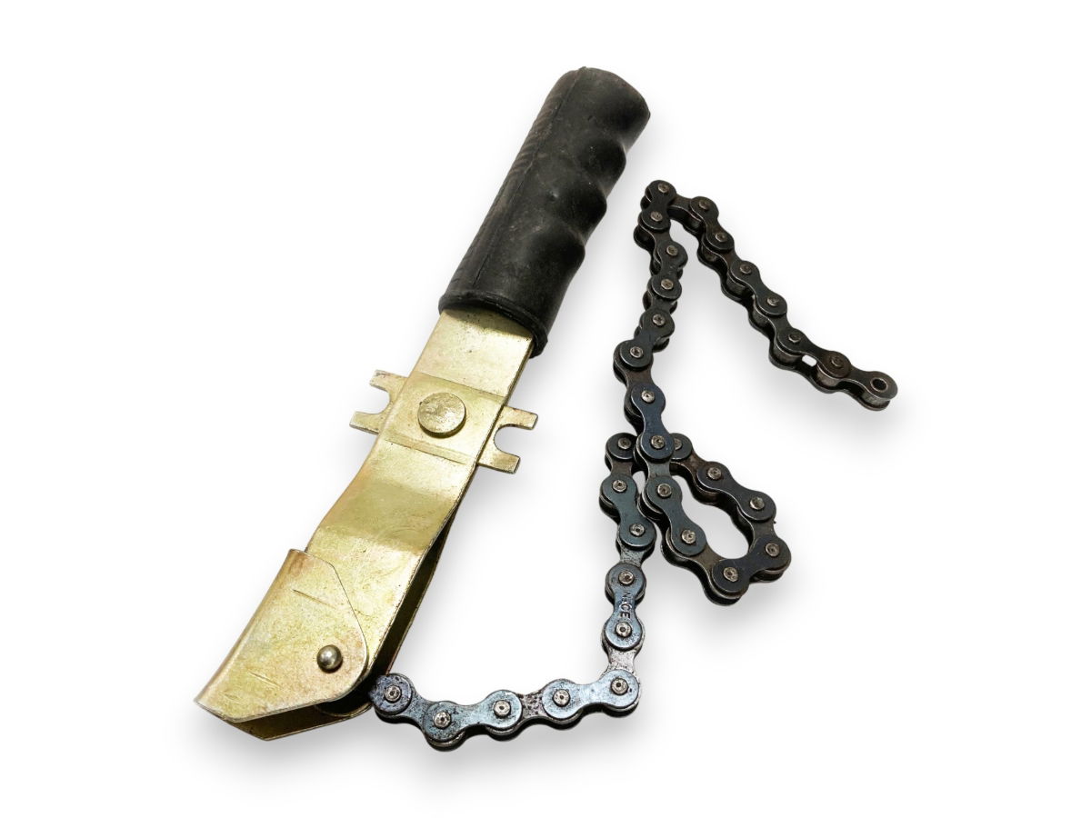 Package dimensions: 28X14x3.5cm. Heavy duty chain filter wrench. Sturdy metal construction. Moulded plastic handle grip. For removal of oil filters from cars, vans etc.