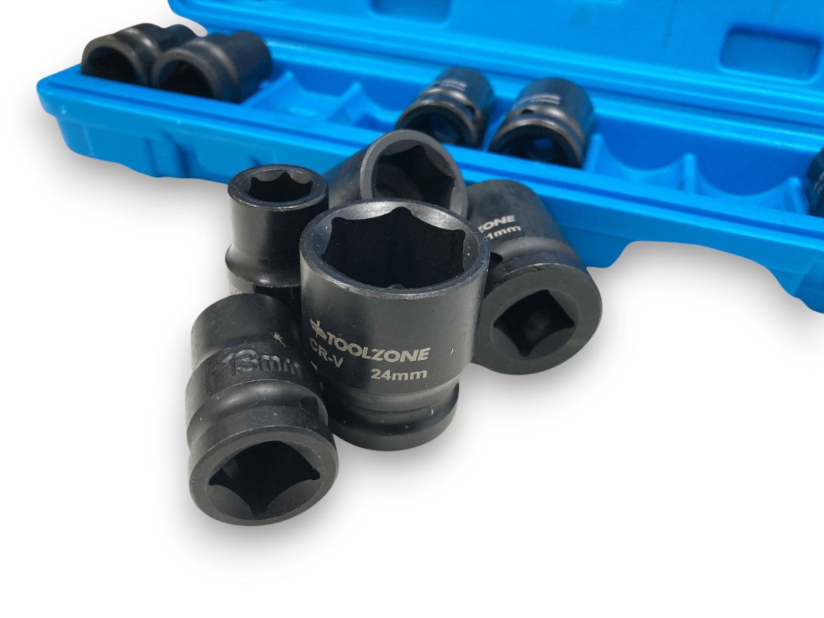 Package dimensions: 31x7x5cm. Sizes: 10,11,12,13,14,17,19,21,22,24mm. Air impact. Opti drive. Chrome vanadium In blow mold case. Elite product.